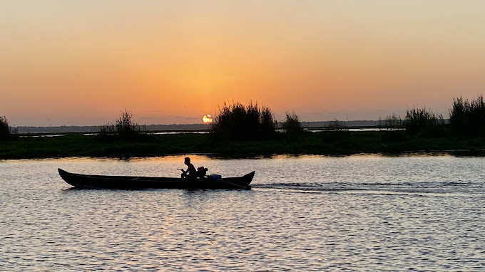 A kingfisher darted across in a flash of blue. Egrets stood still, as though sculpted into the landscape. Somewhere in the distance, the soft rhythm of daily life began—faint voices, a vessel being washed, the first stirrings of a village waking up.